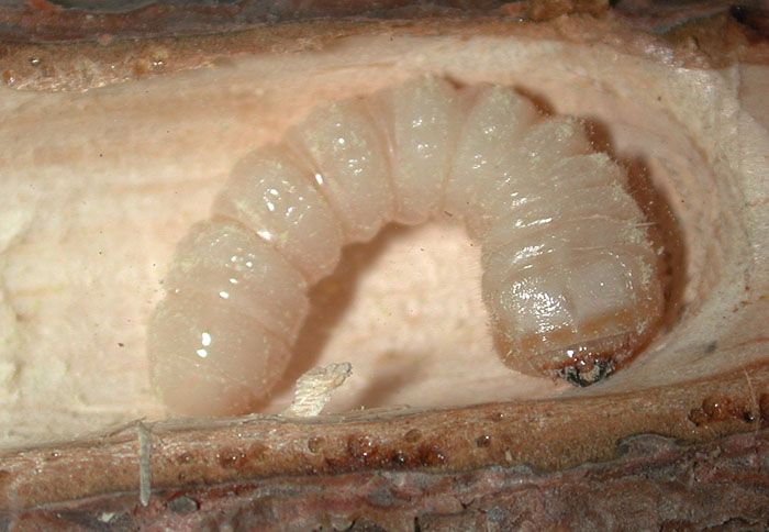 Если пораженный участок большой, нужно воткнуть в поврежденное место нож или шило. Если инструмент входит легко, то повреждения значительные. В этом случае пораженный материал необходимо удалить и сжечь вместе с вредителями. Потом здоровую древесину обработать инсектицидом и антисептиком и в место выемки поместить новый брус. Если древесина достаточно крепкая, но площадь повреждения большая, обработку инсектицидами следует повторить несколько раз.